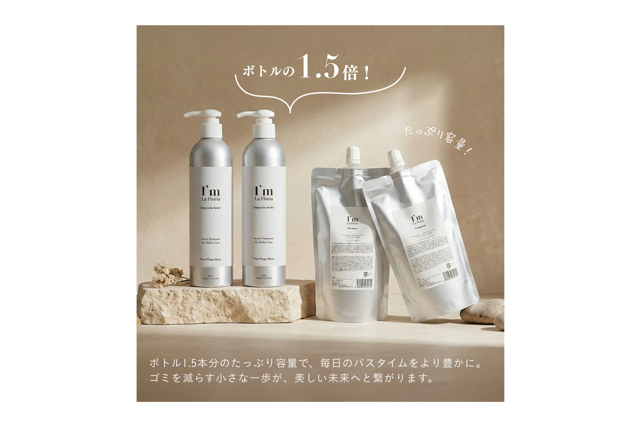 ボトルの1.5倍の容量で、もっとお得に、もっと長く。