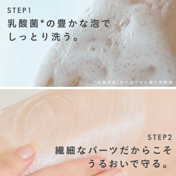 スフレのようにふんわりと優しい質感のクリームは肌馴染みがよくベタつかない使用感。 保湿成分たっぷりでうるおいを与えながら、乾燥や摩擦によるダメージからお肌を守ります。 デリケートゾーンに適した弱酸性処方、界面活性剤フリーのため全身にお使いいただけます。
