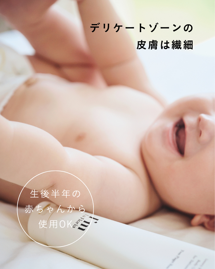 顔よりもさらに繊細なデリケートゾーンケア用に作られた商品なので、肌に優しく、お子様の肌からご使用いただけますが、気になる方は主治医の先生にご相談の上、ご使用ください。